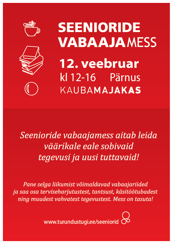 Seenioride vabaajamess aitab leida väärikale eale sobivaid tegevusi ja uusi tuttavaid! Pane selga liikumist võimaldavad vabaajariided ja saa osa terviseharjutustest, tantsust, käsitöötubadest ning muudest vahvatest tegevustest.